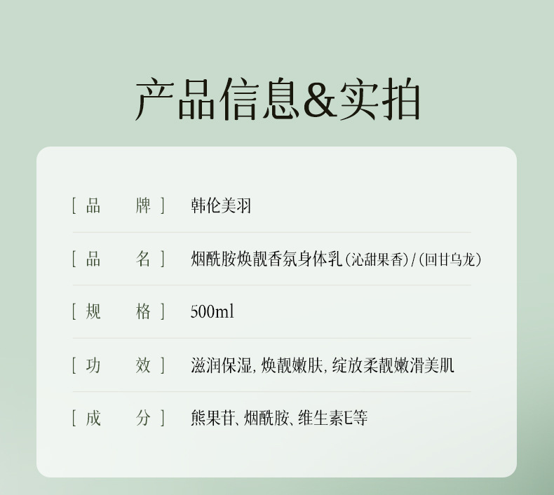韩伦美羽熊果苷烟酰胺身体乳提亮肤色身体润肤乳烟酰胺身体霜大瓶
